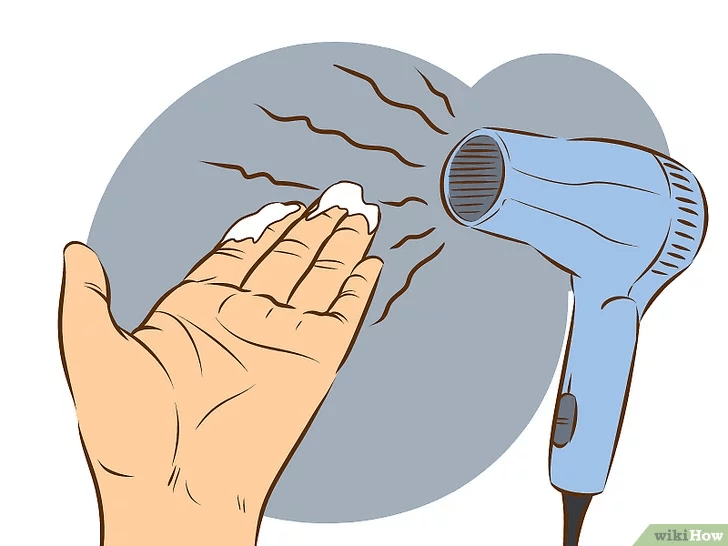 2 ลองใช้ไดร์เป่าผม (อย่างระวัง). ซิลิโคนก็เหมือนสารสังเคราะห์อื่นๆ คือพอโดนความร้อนแล้วจะค่อยๆ นิ่มขึ้น เพราะแบบนี้บางแหล่งข้อมูลเลยแนะนำให้ใช้ไดร์เป่ากาวซิลิโคนที่ติดมือ เริ่มจากเปิดไดร์แล้วเป่าส่ายไปมาบริเวณที่เลอะกาว จนกระทั่งซิลิโคนค่อยๆ อุ่นขึ้น พอรู้สึกว่าซิลิโคนเริ่มร้อนแล้ว ก็ให้ลองเอาฟองน้ำหรืออะไรที่ขัดหยาบนิดๆ มาถูออกดู