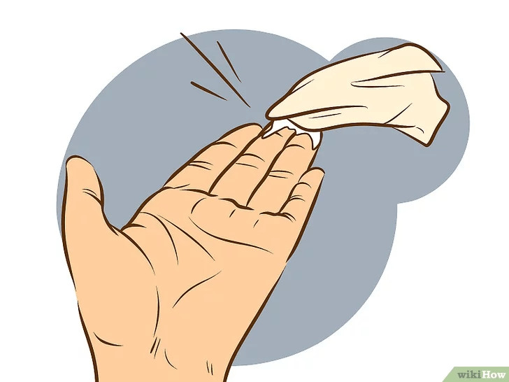 - ขั้นตอนของวิธีนี้คือ ให้เอามุมทิชชู่หนาๆ จุ่มอะซิโตนบริสุทธิ์หรือน้ำยาล้างเล็บที่ผสมอะซิโตน จากนั้นเอาไปเช็ดเบาๆ ที่มือตรงจุดที่เปื้อนกาว ห้ามเทอะซิโตนราดมือ นอกจากเปลืองแล้วยังส่งกลิ่นไม่พึงประสงค์ด้วย ถ้าจะใช้น้ำยาล้างเล็บ ให้เช็คส่วนผสมก่อนว่ามีอะซิโตน