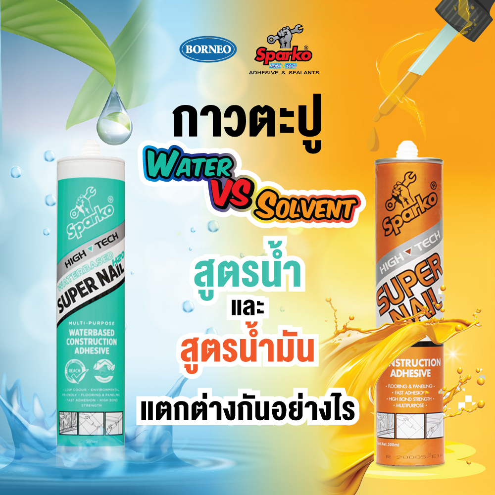 เวลาเราจะติดอะไรกับผนัง เช่น บัวเชิงผนัง แผ่นไม้ หรือของตกแต่งบ้าน หลายคนอาจนึกถึงกาวตะปู เพราะใช้ง่าย ไม่ต้องตอกตะปูให้ผนังเป็นรู แต่กาวตะปูก็มีหลายสูตร แล้วสูตรน้ำกับสูตรน้ำมัน ต่างกันยังไงล่ะ? วันนี้แอดมินจะมาเล่าให้ฟังแบบง่าย ๆ นะคะ 😄